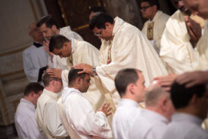 « Seigneur notre Dieu, RĂ©pands la bĂ©nĂ©diction de l’Esprit-Saint et la grâce du sacerdoce sur tes serviteurs que nous te prĂ©sentons. »